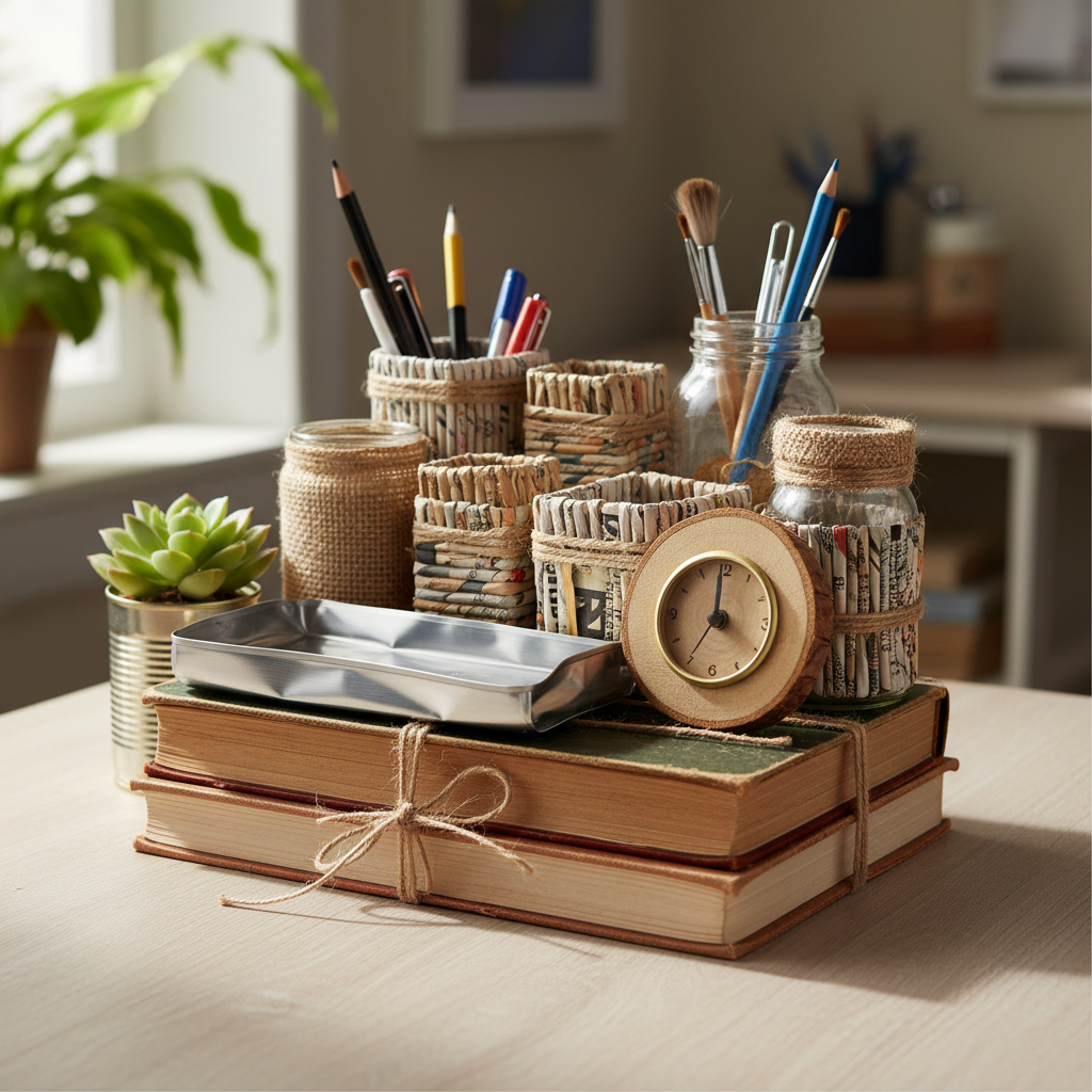 - Organizer z recyklingowanego drewna lub plastiku.