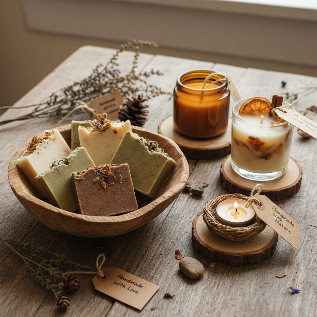 - Ręcznie robione mydła lub świece z lokalnych warsztatów – pachnące, ekologiczne i unikatowe.